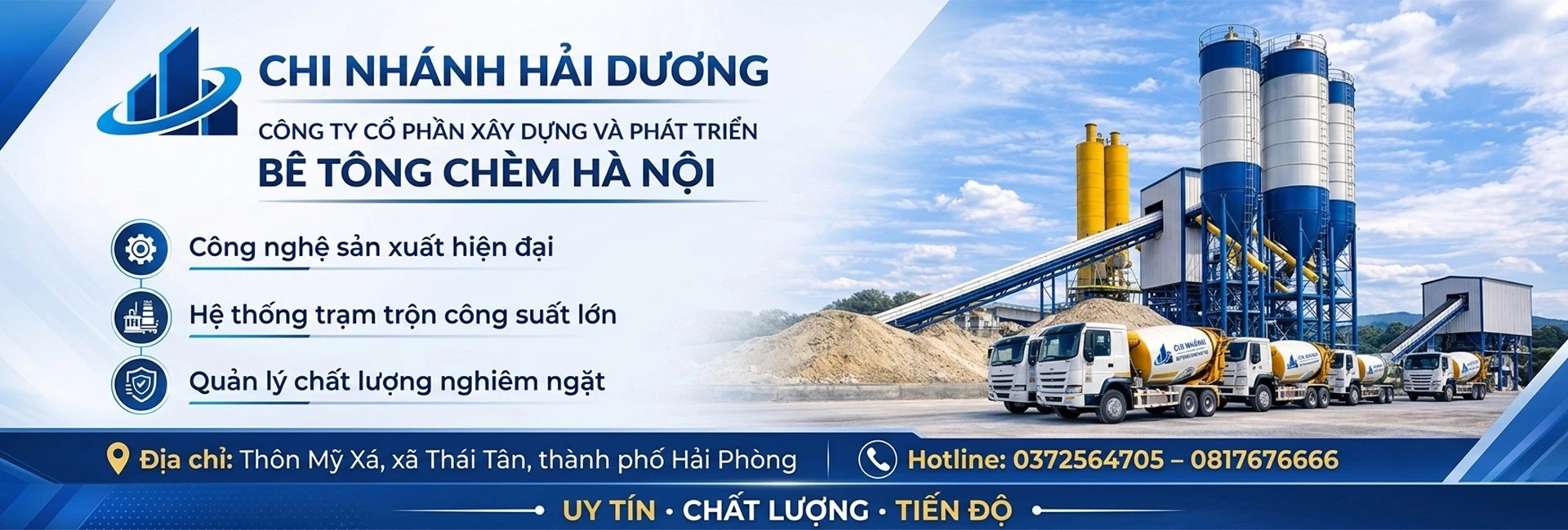 Công ty Cổ phần Xây dựng và Phát triển Bê Tông Chèm Hà Nội được thành lập nhằm mở rộng mạng lưới cung ứng bê tông tươi chất lượng cao tại khu vực Hải Phòng và các tỉnh lân cận.